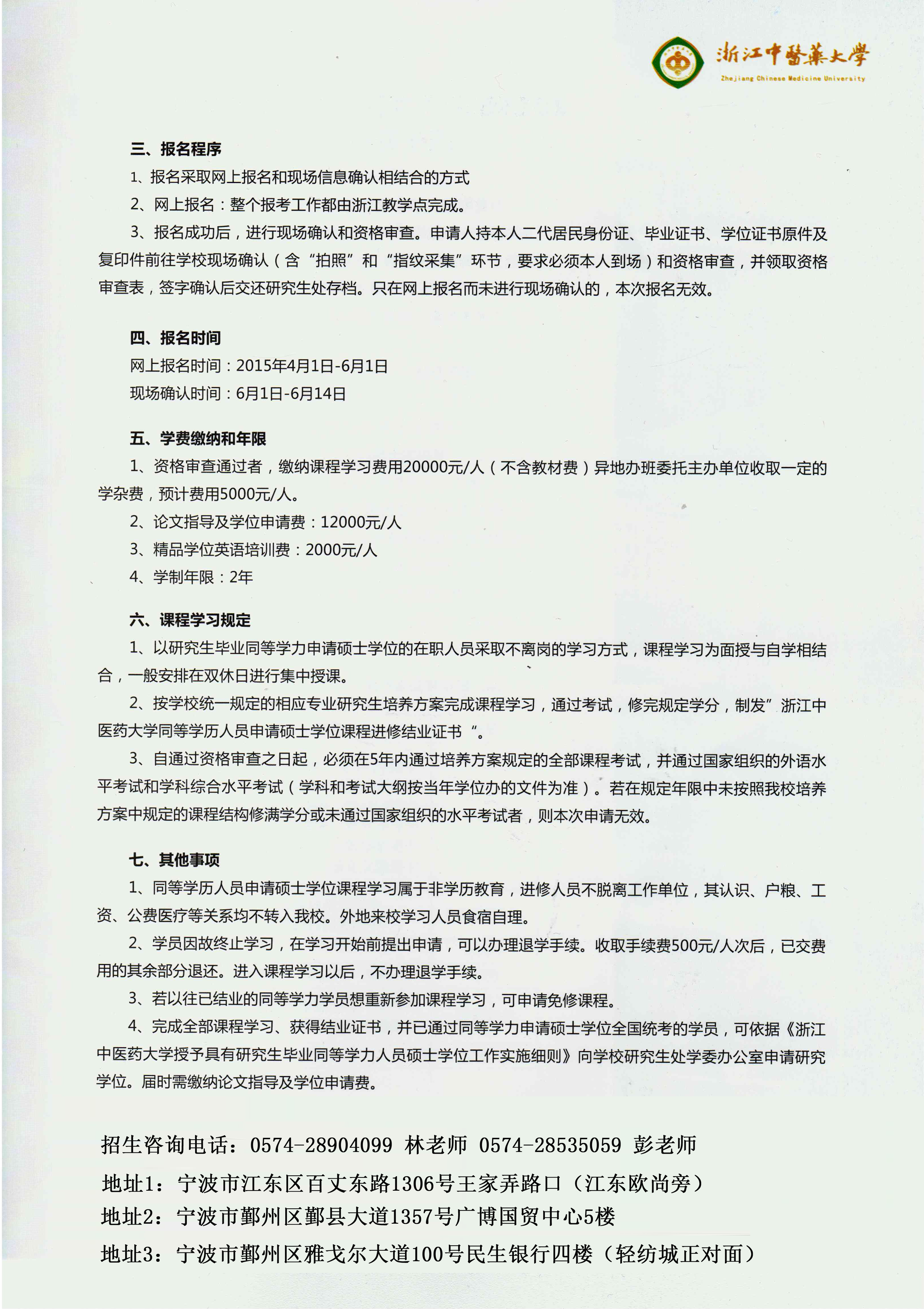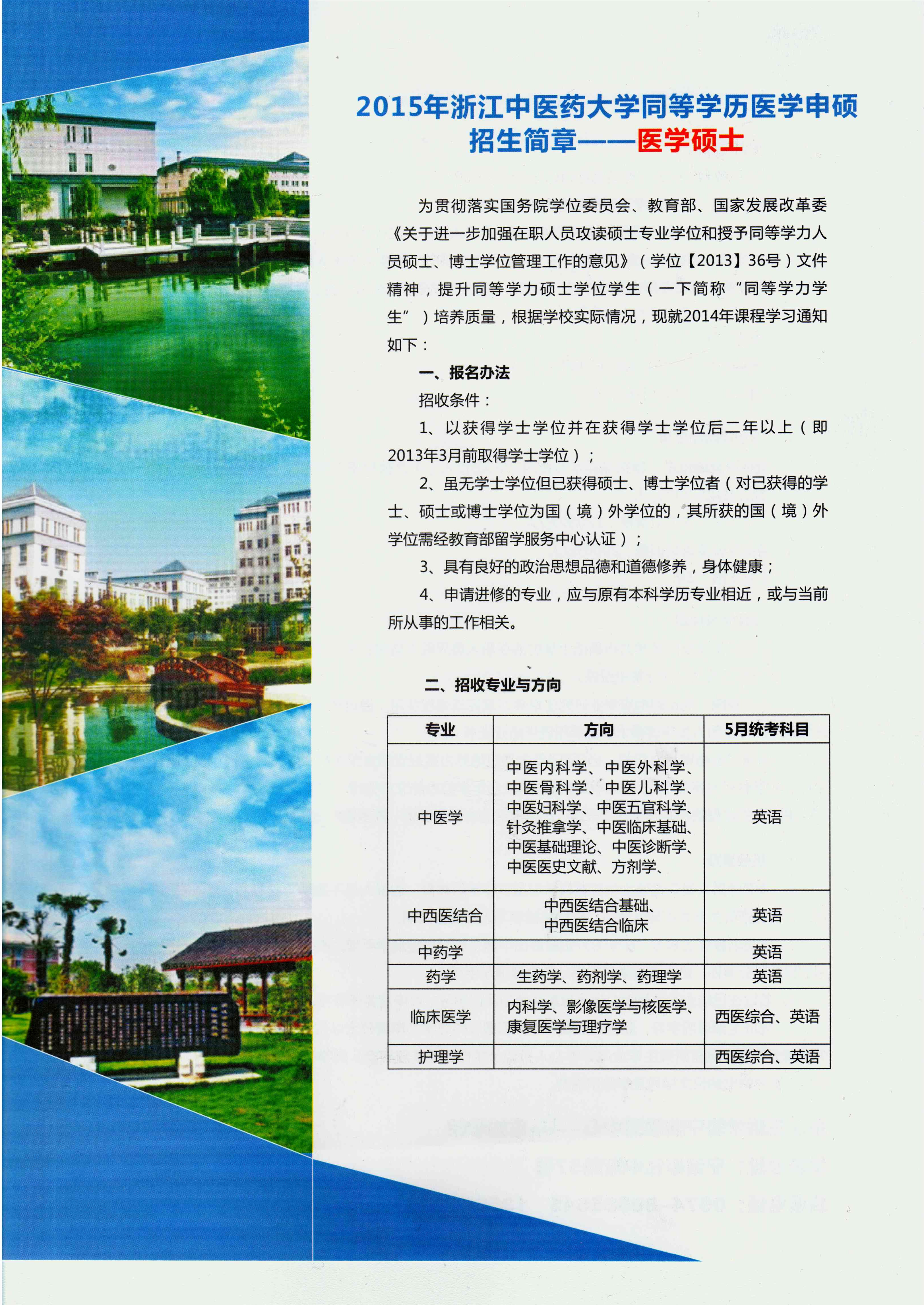 醫(yī)學類(護理學、臨床醫(yī)學、藥學、中藥學、中西醫(yī)結合、中醫(yī)學)碩士2015寧波招生簡章