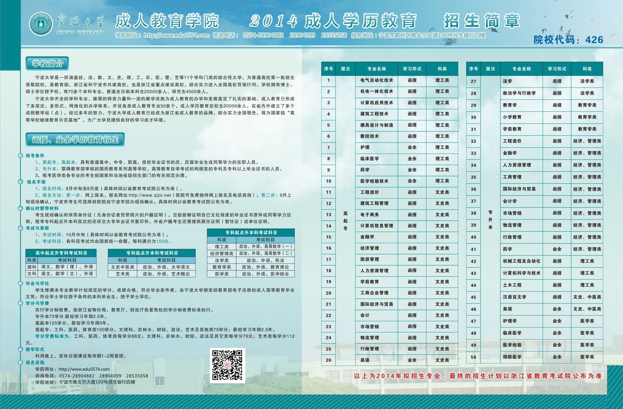 2014年寧波大學(xué)成人教育招生簡(jiǎn)章