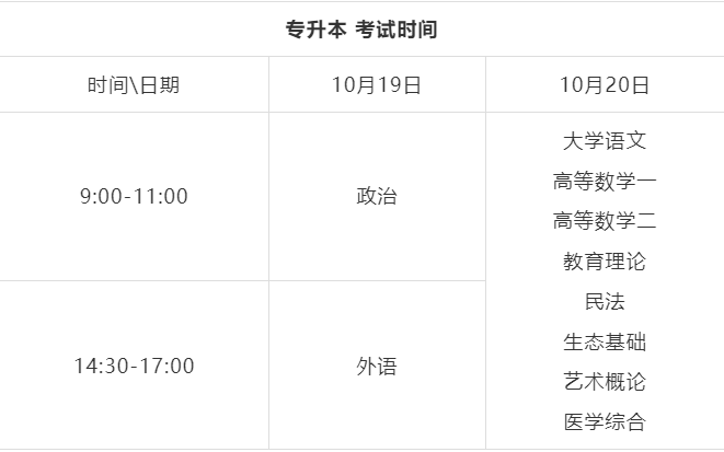 專升本考試統(tǒng)考科目均為三門,其中,兩門公共課為政治、英語,一門專業(yè)基礎(chǔ)課根據(jù)招生專業(yè)所隸屬的學(xué)科門類確定。
