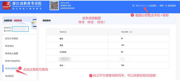 查詢成績后務(wù)必將成績截圖發(fā)給對應(yīng)的負責(zé)你成考成績查詢的老師!
