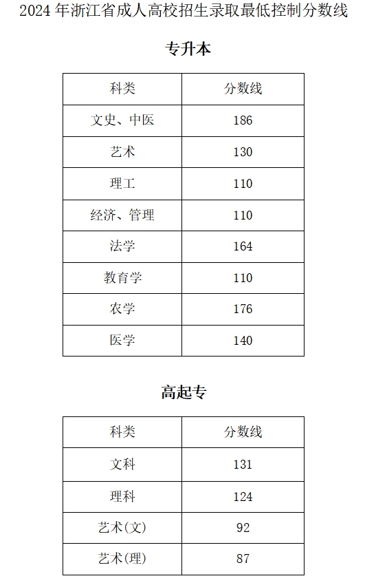 2024年浙江省成人高校招生錄取最低控制分數(shù)線已出見下圖,浙江省錄取工作將于12月份進行,錄取結(jié)果請各位同學(xué)耐心等待!