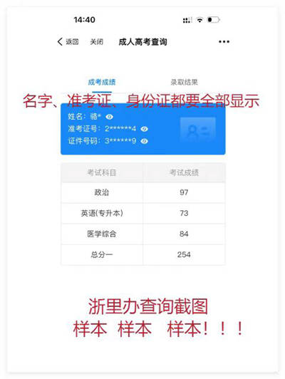 步驟:打開“浙里辦”App→成人高考查詢→人臉認證→輸入準考證號→即可查詢