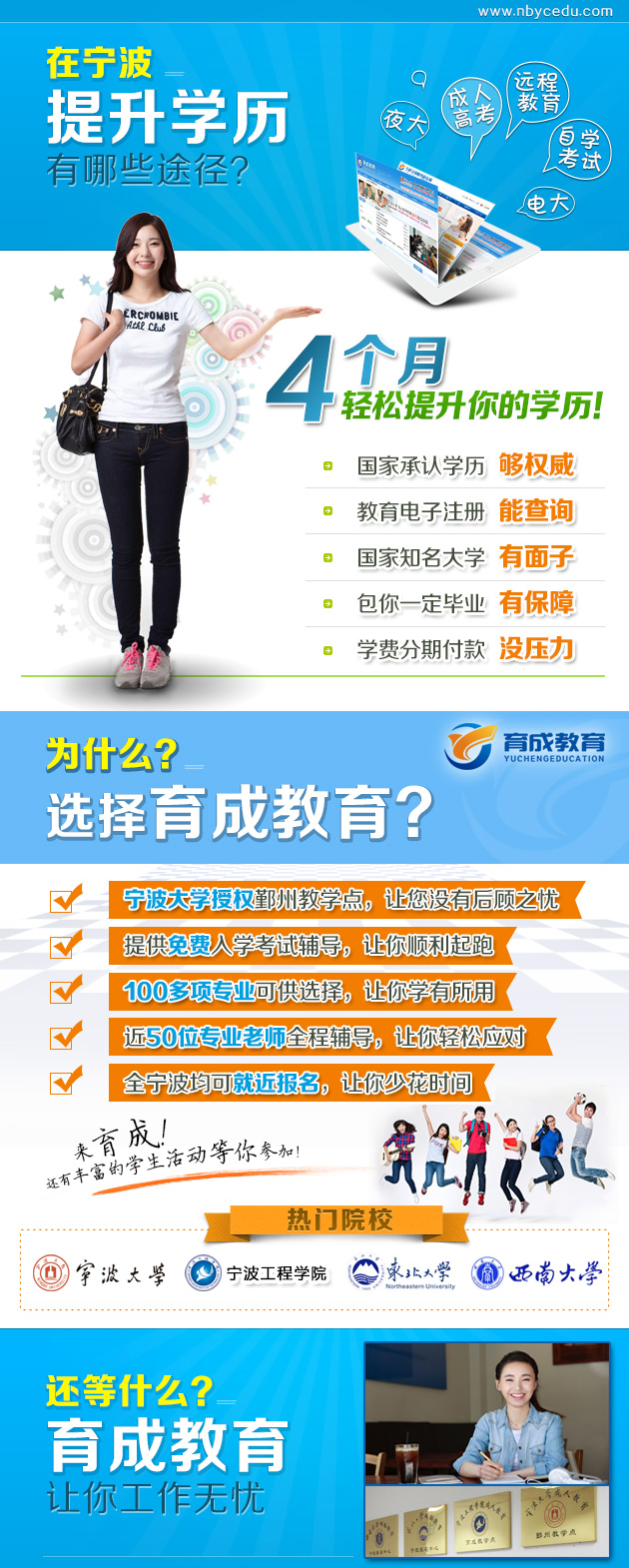 育成教育是寧波大學、寧波工程學院在寧波的最大的教學點,歡迎各位前來了解和報考!